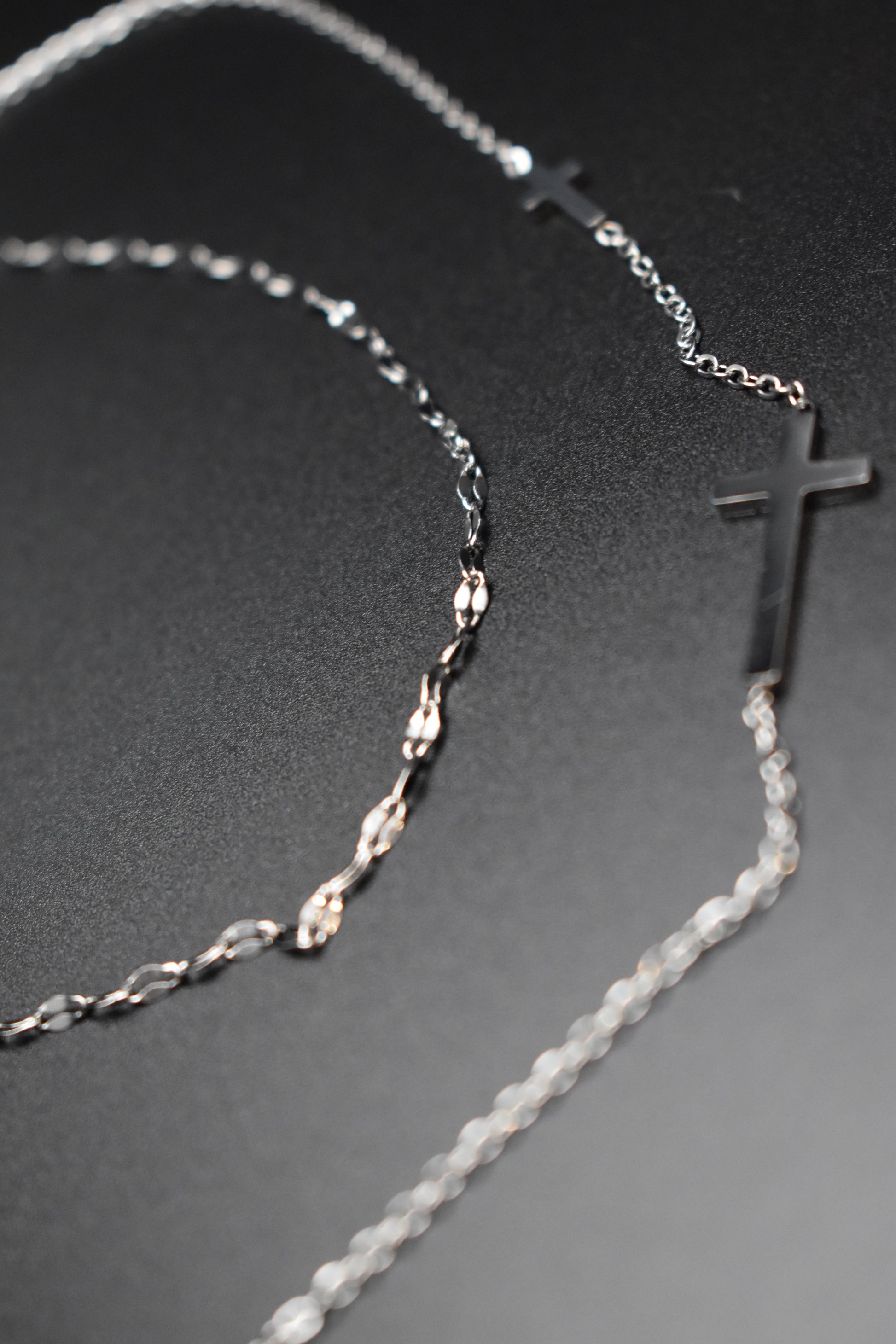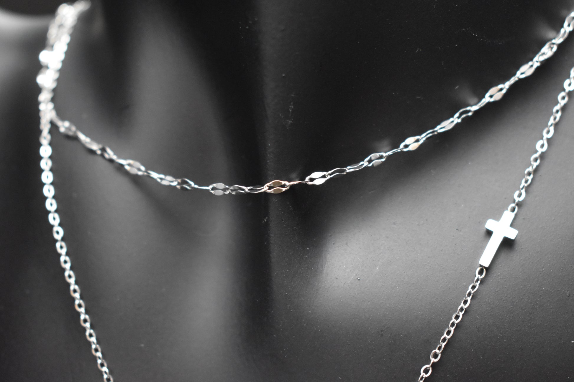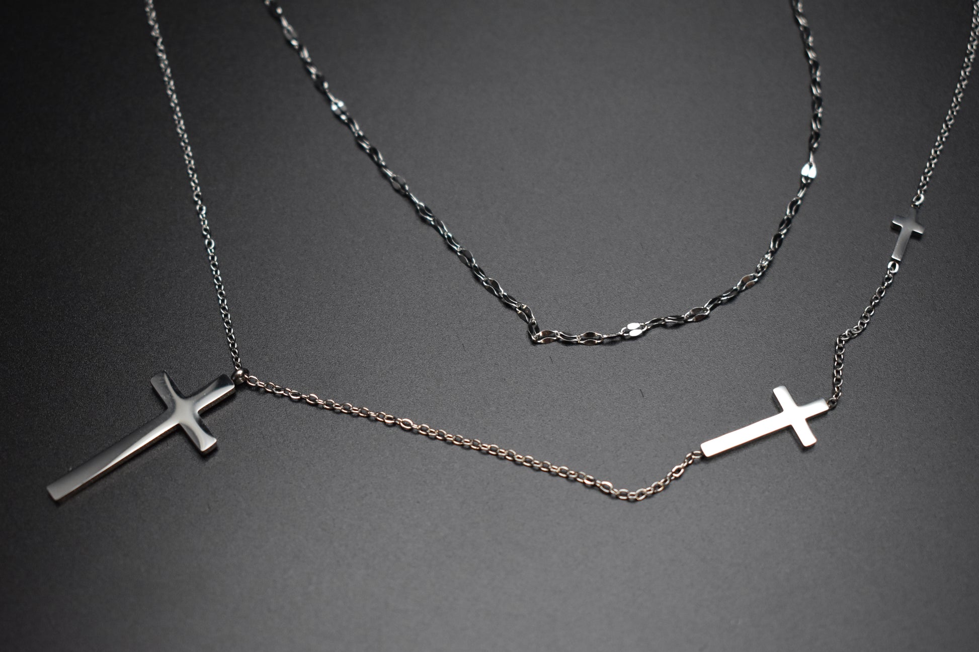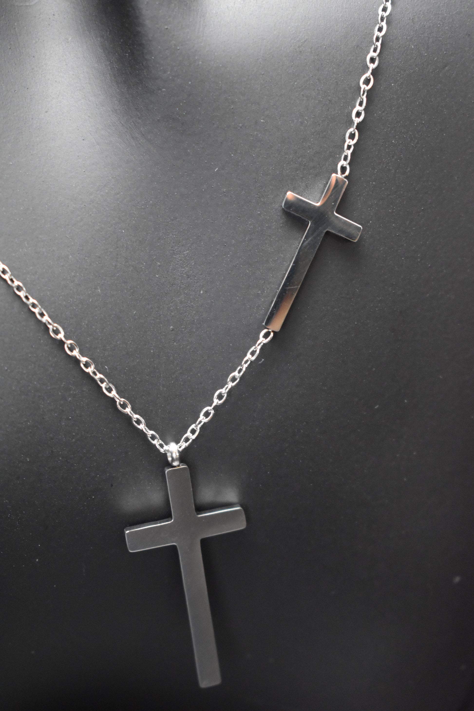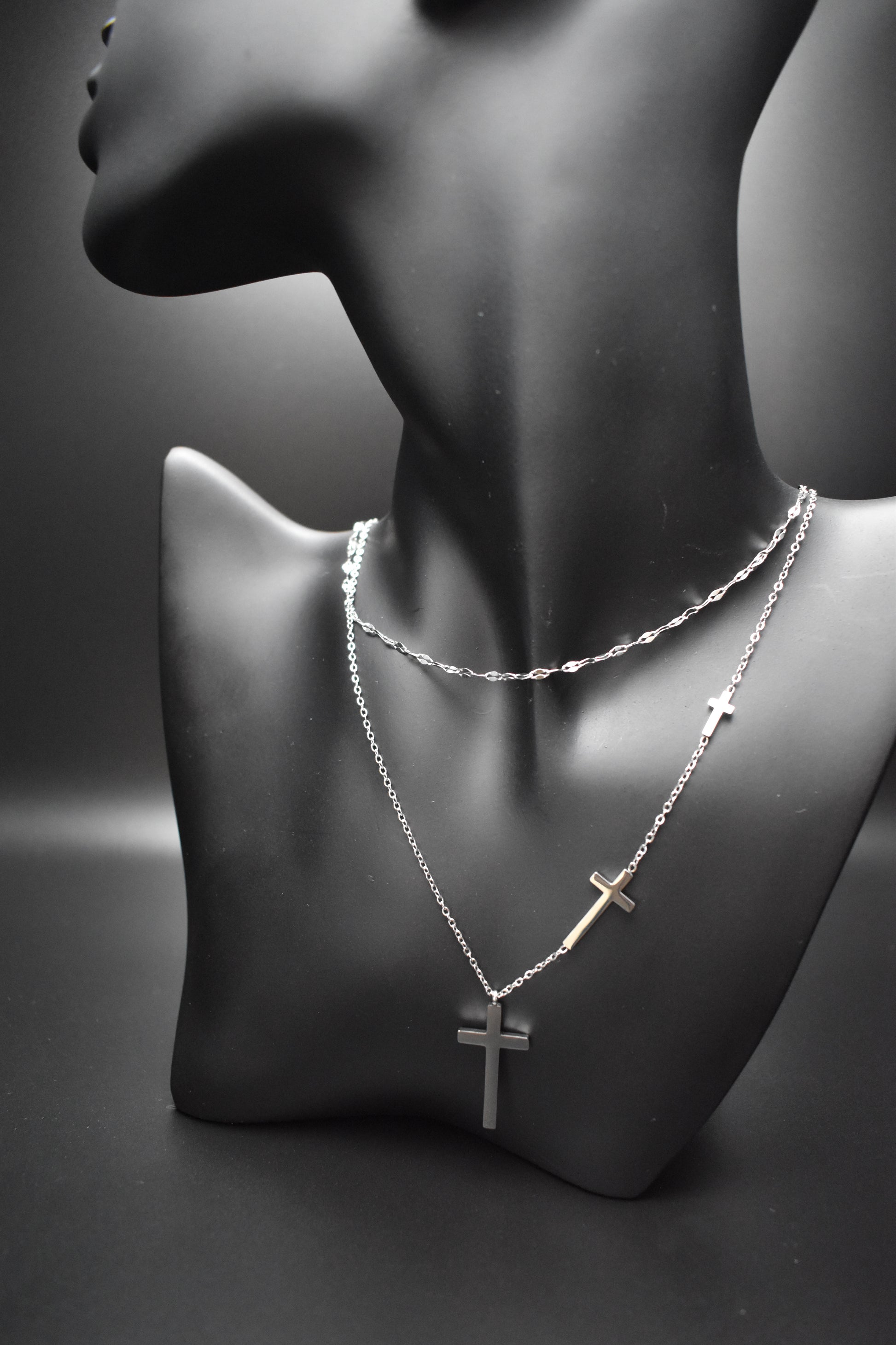 This necklace features three silver crosses, crafted with care and precision. Perfect for a special religious occasion or as a daily reminder of faith. The delicate design adds a touch of elegance to any outfit. Made from the finest materials, it's both durable and beautiful.